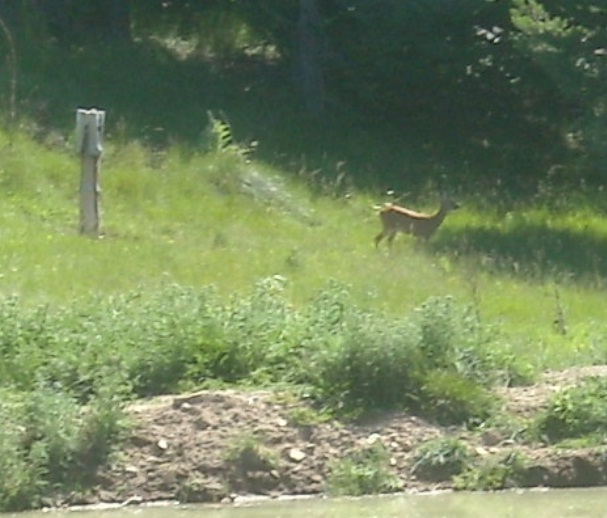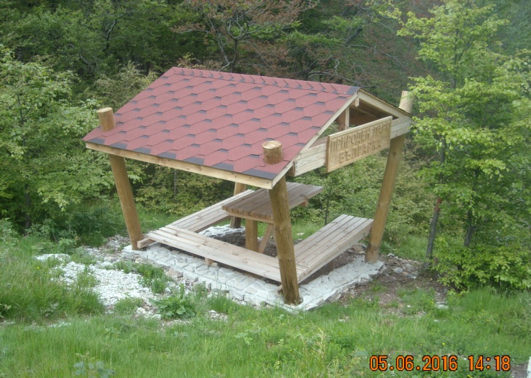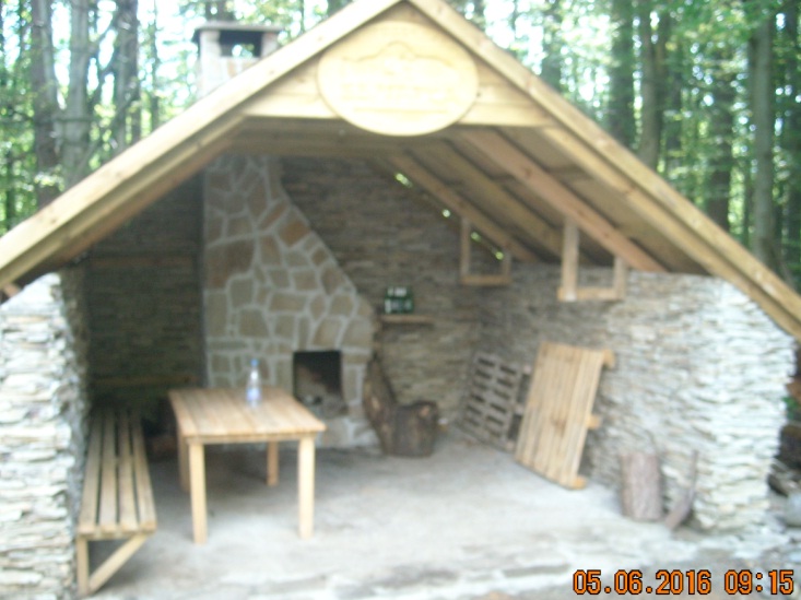 Добре че имаше направено заслонче, с две пейки, където дремнах следобеден сън, докато премине дъждът. След това за 40 минути достигнах до ловния заслон с езерце и чешмичка. И тук започна дъжд, но пак го изчаках под навеса, под който ловците си правят разпивка.
