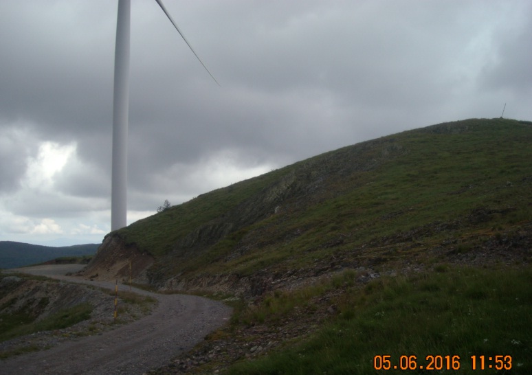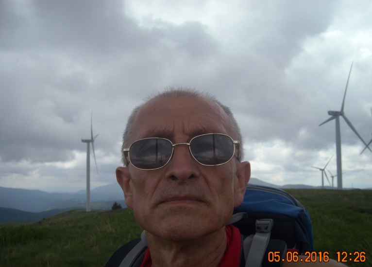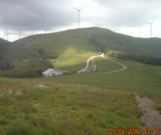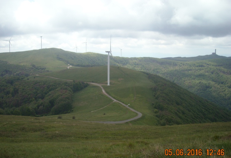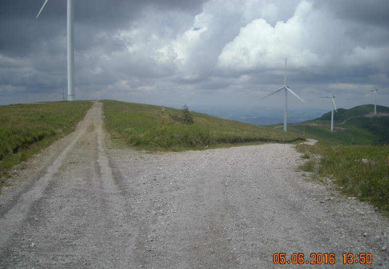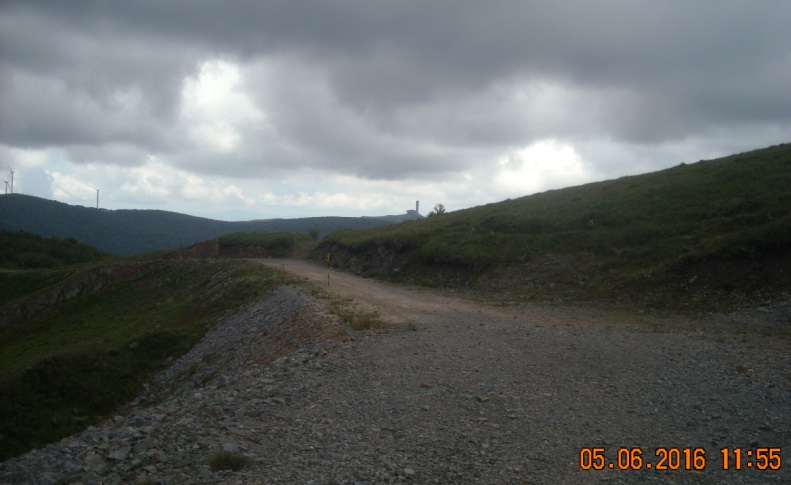 Вече съм вървял 6 часа и нямам повече време, трябва да се връщам. Тръгвам на обратно, но вече не вървя по билната маркировка, а по шосето свързващо ветрогенераторите. Долната снимка е направена от връх Караджова кула, направо се вижда Голям Бедек, а на дясно се отива до Малък Бедек, който се вижда най в ляво на снимката.