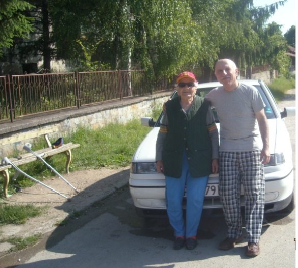 Човекът, който ми направи снимката, беше с майка си, която въпреки че е на 88 години каза, че и тя иска да се снима, та затова слагам тук нейна снимка, да се види. Патериците на пейката са нейни, но иначе жената е съвсем с акъла си.