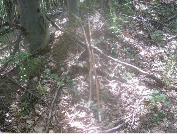 След още час и съм на поляната със заслона под връх Мъхченица. Без да спирам се отправям по пътеката към връх Бедек, където предния път си забравих бамбуковата щека. Естесвено, че никой не беше я бутнал даже.