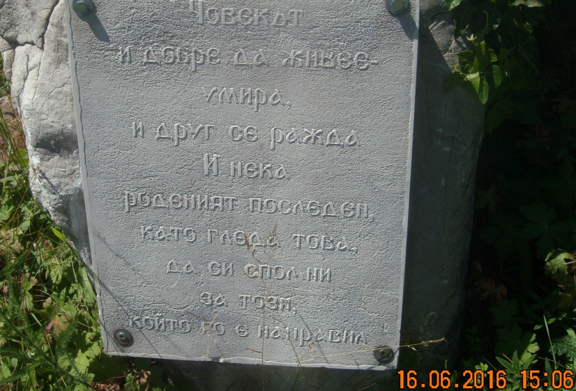 На чешмата, построена от ловците е сложен поучителен надпис.